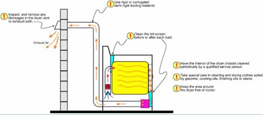 | The U.S. Consumer Product Safety Commission estimates that in 1998, clothes dryers were associated with 15,600 fires, which resulted in 20 deaths and 370 injuries. Fires can occur when lint builds up in the dryer or in the exhaust duct. Lint can block the flow of air, cause excessive heat build-up, and result in a fire in some dryers. |